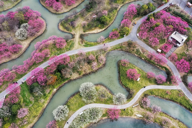 花开海上生态园。