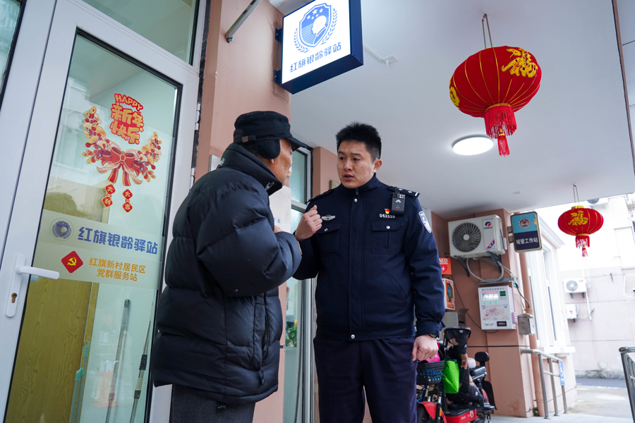 闵行红旗社区,近半数住户是老年东谈主。本年春节前,社区里新揭牌的“银龄驿站”吵杂起来。剃头、测血压、安全课堂、矛盾合股、便民商榷……这个约120平淡米的空间,不仅是职业窗口,更是警务前移的触角。“老东谈主们民俗往居委会跑,咱们就往他们身边靠。”碧江路派出所社区民警沈恺毅说。