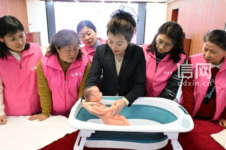 月嫂培训班的老诚为学员种植婴儿沉溺学问。(开始:即墨区委宣传部)