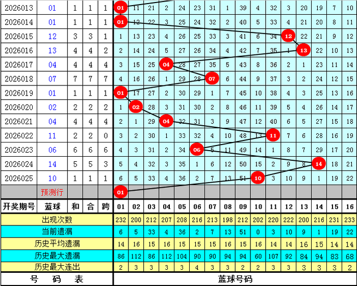 蓝球分析:蓝球上期开出10,遗漏值为15,温冷蓝球号码近期开出频次较高,本期合适柔和热码蓝球回补,4码蓝球参考01、04、06、10,要点柔和01、06。