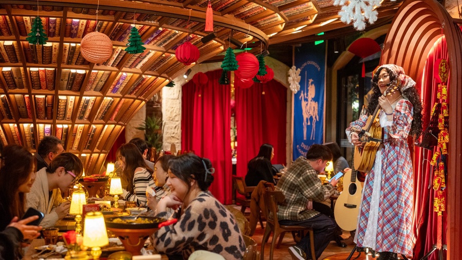 位于滨江的堂吉诃德西班牙主题餐厅酒馆,将西班牙骑士任性与中国新春喜庆氛围玄机和会,打造出极具辨识度的新春餐饮体验。店内枚举的骑士铠甲摆件、点缀墙面的弗拉门戈风情壁画,让外乡氛围感愈发浓厚;每到晚间,特邀驻唱歌手倾情献唱,门客在享用好意思食的同期,可同步感受味觉、视觉与听觉的三重体验。市民朱密斯告诉记者,她和一又友循着好意思团发布的“上海西班牙风范之旅—弗拉明戈风范舆图”,专程来打卡。“餐厅遮蔽很有特质,氛围也很好,能在这么的环境里和一又友吃顿新春团圆饭,嗅觉很罕见。”