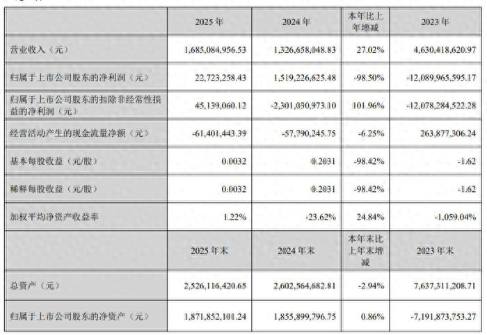 2025 年,协力泰杀青营业收入 16.85 亿元,较上年同期增长 27.02%;包摄于上市公司股东的净利润2272.33 万元,同比下跌 98.50%;包摄于上市公司股东的扣除非不时性损益的净利润4513.91 万元,同比增长 101.96%,杀青筹办性盈利。