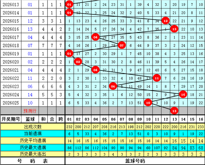 蓝球分析:近期大号蓝球出现较少,本期安妥眷注大号蓝球转热,蓝球参考11、12、13、15。