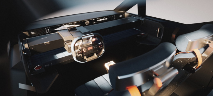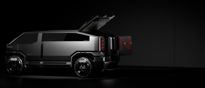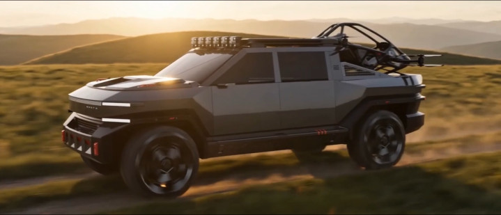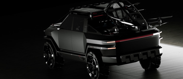 MONTX P10披覆冷峻的“战机灰”涂装,保障杠与引擎盖注入铠甲般的强化纹理,车顶“雨林线”如开采者触角、车斗搭载的载东谈主飞行器,以浮现碳纤维骨架与硬朗车身共振,演绎“重与轻”、“地与空”的野性放荡与科技感。