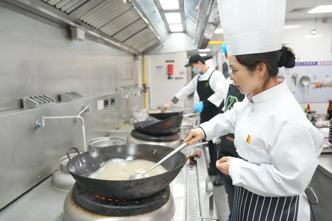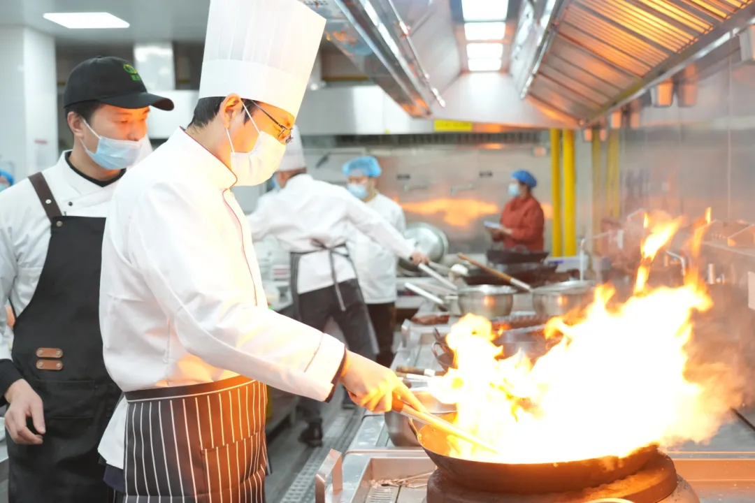 拓印福字的红纸未干,食堂后厨已飘出阵阵菜香,上海建桥学院校勾搭们系着围裙,戴着厨师帽,正将刚出锅的宫保鸡丁、可乐鸡翅等装盘……家常菜,最有点火味,也最有家的滋味。在临港校区南食堂三楼的桃源餐厅,留校学生们围坐在一谈,恭候马年团圆宴开席。