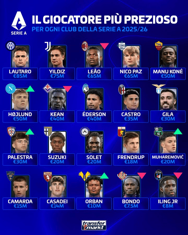 虎扑04月07日讯德国转会市集盘货了意甲各支球队队内身价最高的球员,ag登录笃定如下: