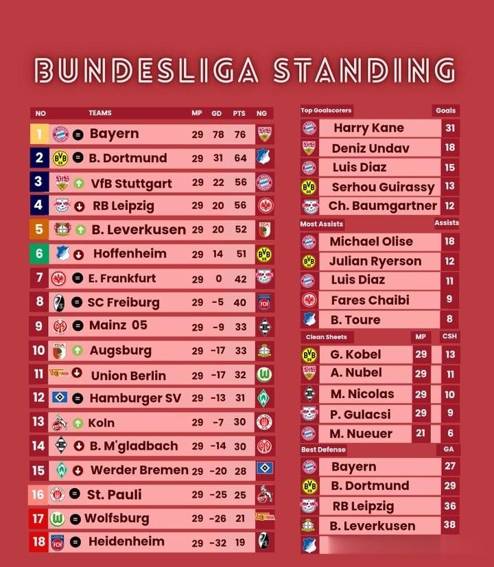科隆3-1不莱梅;斯图加特4-0汉堡;好意思因茨0-1弗赖堡