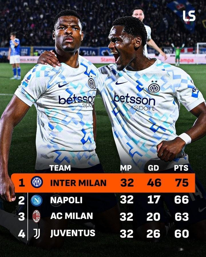 此役事后,似乎国米的夺冠已愈发坚信--32轮斩获75分从而非凡生后的那不勒斯9分的蓝黑军团,惟有再能将现在的知道延续3轮联赛,其实他们就不错完成提前夺冠;