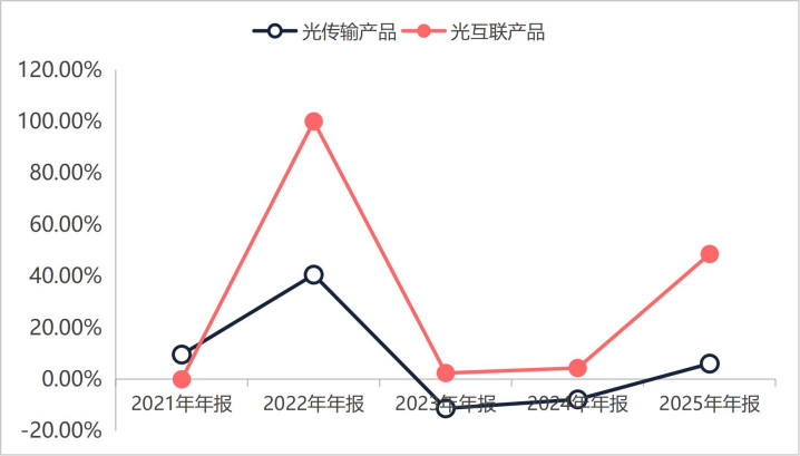 不外,相对相比可以的小数是,在光传输居品负增长的年份,长飞光纤栽种的第二弧线光互联居品运行贯串了部分光传输居品功绩下滑的情况。从长飞光纤2022年年报单独暴露光互联居品的功绩以来,四年技巧光互联居品运行小幅增长,2023年同比增长2.44%,ag国际2024年同比增长4.39%,2025年同比增长达到了50%。光互联居品2025年的高速增长是不是揭开长飞光纤第二弧线驱动的高增长帷幕呢?