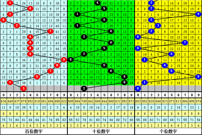 百位号码:第26041期-26045期奖号为:9-8-7-5-1,振幅为8点,散布较差异,本期瞻望百位走高,暖热号码3。