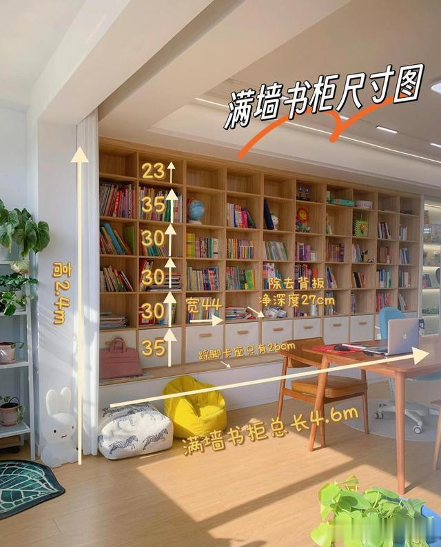 最妙的是书厨底下作念的卡座筹办,高度正巧42cm,坐着看书忻悦,站上去拿高处的书也便捷,底下的抽屉全是孩子的玩物,收纳力强得很!