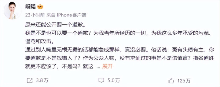 如今,段曦站出来说:“我是不是也不错要一个说念歉?”