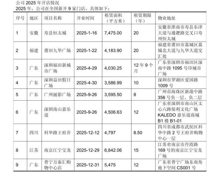 广西的已开业门店由2024年末的7家减至2025年末的4家,减少了3家,降幅42.86%。