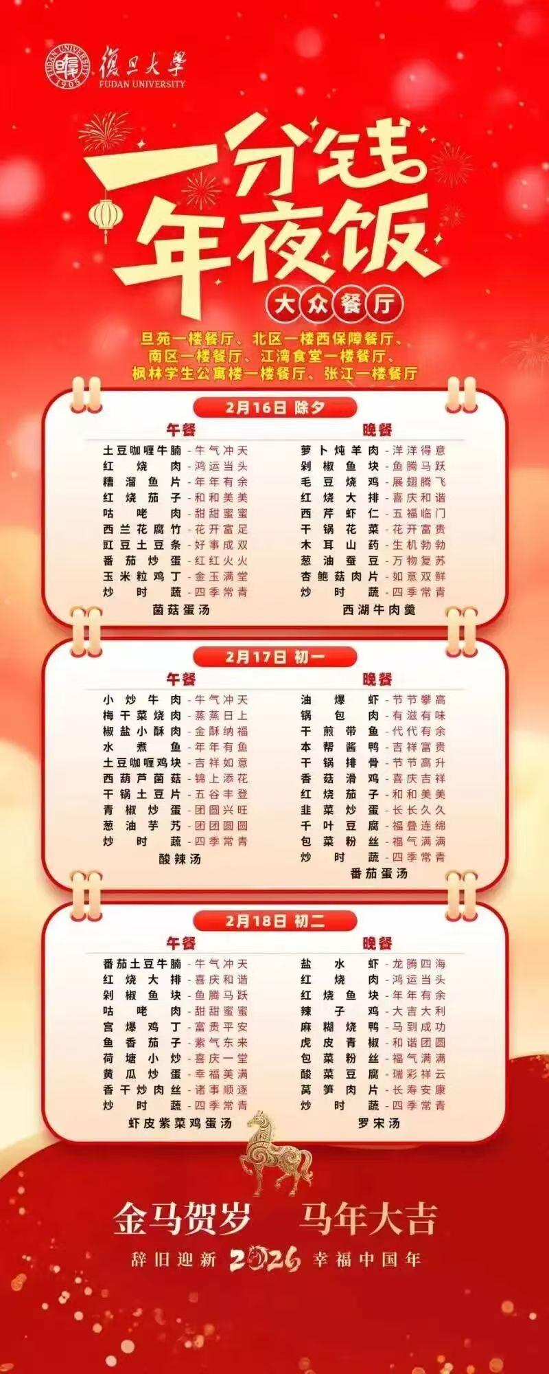 可免费到食堂享用除夕饭