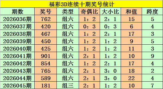 上期回顾:福彩3D第2026045期奖号:181。组三、小大小、奇偶奇。