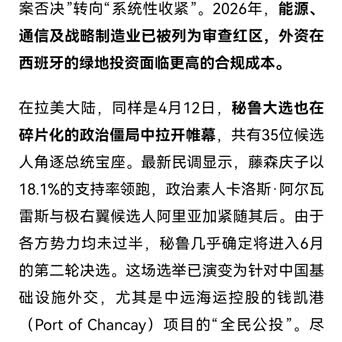 匈牙利并非孤例。放眼巨匠,跨国企业正面对本钱流动撞上碎屑化选举周期的大批窘境。在秘鲁,钱凯港名目因政权更替深陷主权争议;在巴西和西班牙,ag国际政事钟摆的向右舞动预示着外资审查将从个案否决转向系统性收紧。在好意思国,两党博弈加重,企业更难“选边站队”。
